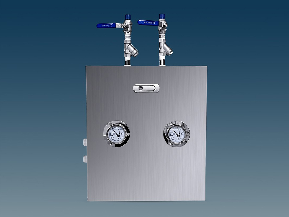 汽水分配器:整體采用不銹鋼304外殼,內(nèi)含不銹鋼管件,水、氣路調(diào)壓閥,水、氣路手動球閥, 配合萬向節(jié)使用,確保噴頭水、氣壓平衡,保證噴霧效果,可增加電磁閥門,遠(yuǎn)程控制水氣路開關(guān),也可增加防凍保溫伴熱功能
