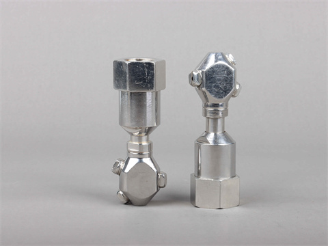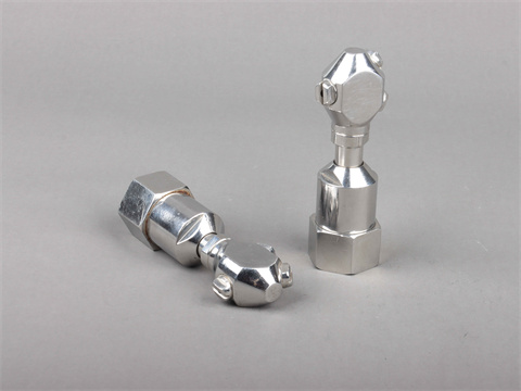 旋轉(zhuǎn)噴霧頭處有三個(gè)高壓平扇噴霧噴嘴。噴咀應(yīng)準(zhǔn)確定位,以便沖洗所有內(nèi)表面。因此,有兩種型號(hào)的噴嘴可以有效地清洗小瓶?jī)?nèi)部、iara內(nèi)部和barrel內(nèi)部。