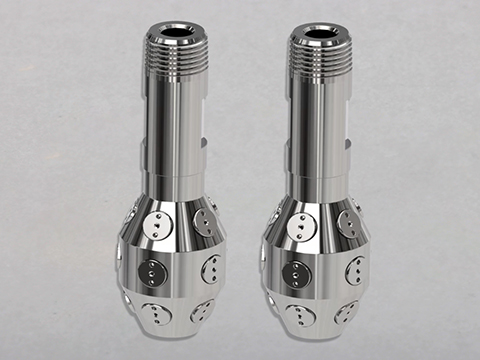 2、該噴嘴有15或21個(gè)全錐形噴嘴可供選擇,可以在10巴的壓力下完全覆蓋小容器的內(nèi)表面