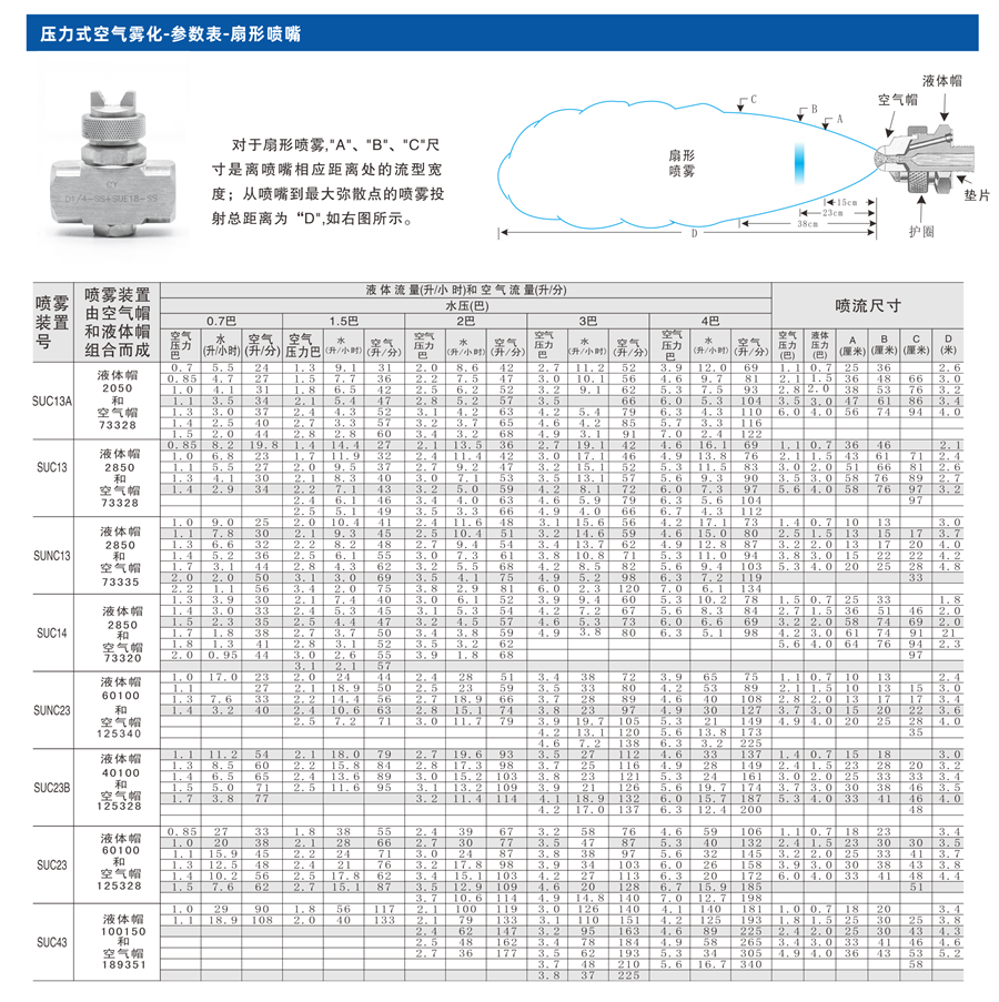 3、每一種噴霧裝置均由空氣帽和液體帽組成,噴嘴體的入口接頭有多種尺寸,以上噴嘴部件可以互換,適合大多數(shù)常用的管道